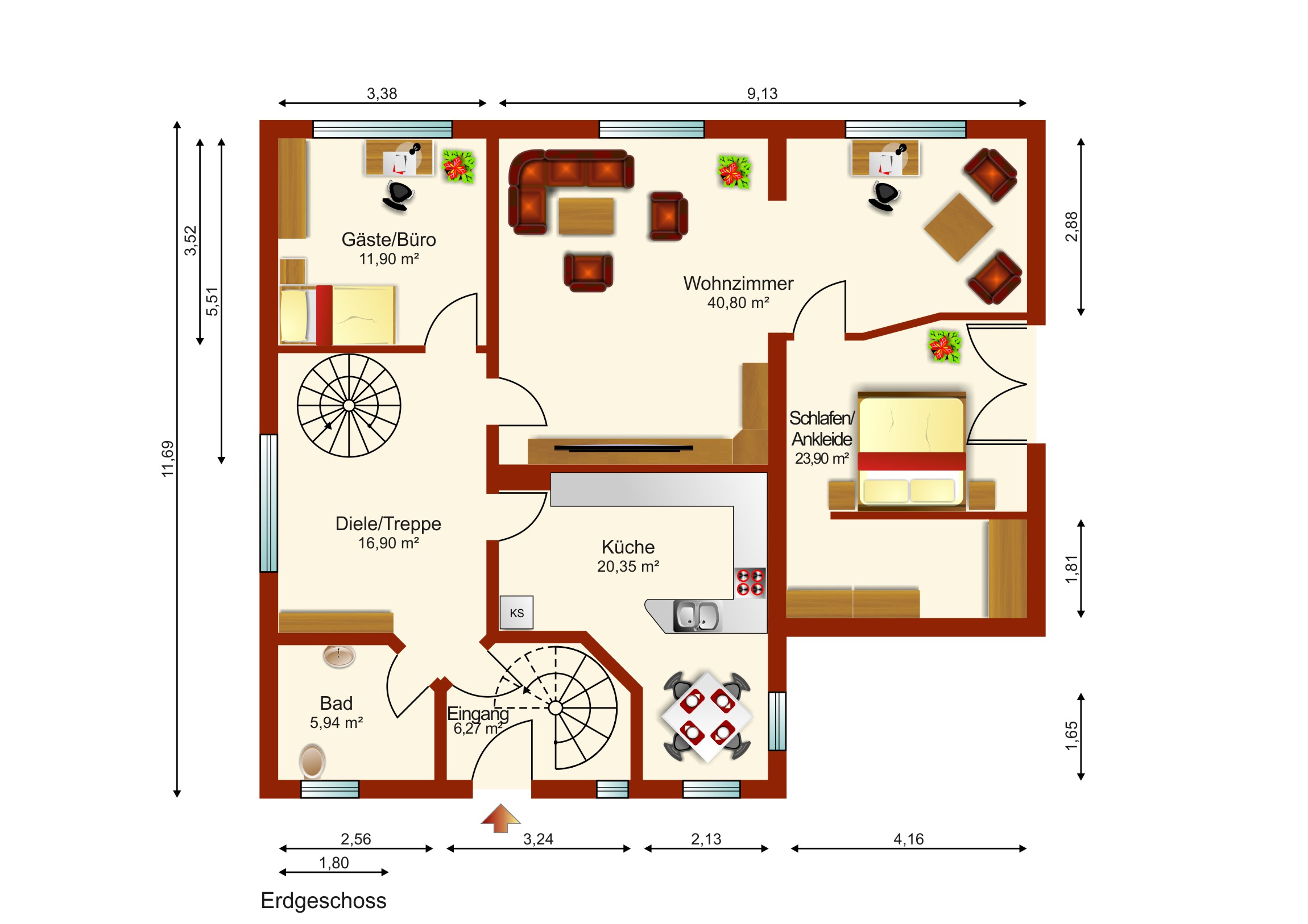 ◆ Bauart Massivbauweise (Porenbeton f. Außenwände | KS für Innenwände)